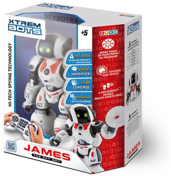 BLUE ROCKET James, a kém robot Ajánlott 5-14 éves korig fiúknak [Cikkszám 75757]A Blue Rocket márka innovatív transzformer, a James-The Spy Bot, tökéletes választás a robotika és programozás iránt érdeklődő fiatalok számára. Ezzel a játékkal a gyerekek szórakoztató módon ismerkedhetnek meg a technológiai világ rejtelmeivel, miközben fejlődik a logikai gondolkodásuk és kézügyességük. James, a világ leghíresebb kémje, ellátja a gyerekeket titkos küldetésekkel, ahol programozhatják a robot különféle lépéseit, így egyedi élményt nyújtanak. A James-The Spy Bot több mint 50 programozható akcióval és több mint 20 funkcióval rendelkezik, amelyek színes hangzásával és vizuális elemeivel szórakoztatják a fiatal felhasználókat. A játék különlegessége, hogy a robotot egy titkos kommunikációs rendszeren keresztül aktiválhatjuk, ahol egyszerű tapsokkal tudunk parancsokat adni. Ezen kívül a kémmód lehetőséget biztosít a beszélgetések rögzítésére és lejátszására, akár módosított hangon is. A James-The Spy Bot a zenei és táncos móddal tovább fokozza a játékélményt, így minden gyermek számára izgalmas szórakozást kínál. Ajánlott 5-14 éves korig fiúknak. Gyártói információ A Blue Rocket egy innovatív és kreatív játékokra specializálódott márka, amely a tanulás és szórakozás élményét ötvözi.