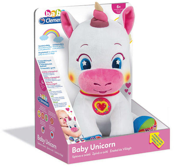 Az aranyos plüss egyszarvú egy puha háziállat, amelynek 5 interaktív gombja van. Az első számok, betűk, formák és színek játszva tanulásában remek partner. Taníts új szavakat a kicsinek varázslatos dalok és vidám mondókák segítségével. Az interaktív gombok olyan mancsokon helyezkednek el, amelyek képei reagálnak, amikor megnyomják. Az egyszarvú arca és szarva világít. A játék biztonságos, nem mérgező anyagokból készül, fejleszti a gyerekek érzelmi, pszichomotorikus és finommotorikus képességeit.