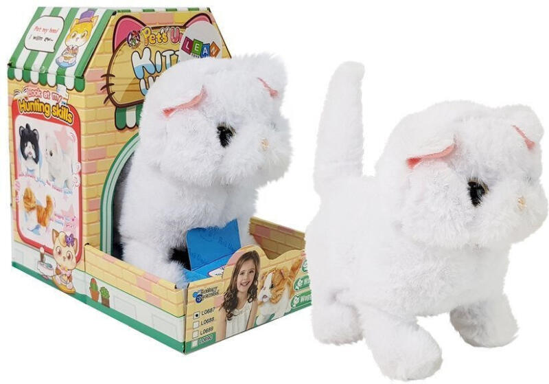 Fehér perzsa macska sétál és csóválja a farkát elemeken