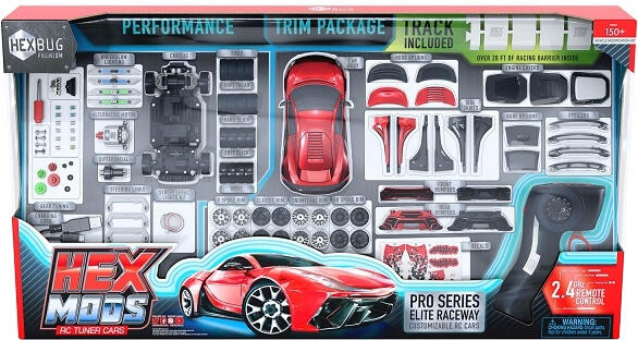 A HEXBUG Hexmods Pro series Elite játék egy megépíthető RC autómodell, nagyszerű lehetőségekkel az egyedi hangolásra. A készlet tartalmaz egy autó alvázat, amely akár 29 kilométeres óránkénti sebességet is képes elérni! A 2,4 GHz-es távirányító arányosan kézre van formázva a könnyebb és intuitívabb kezelés érdekében. Bónuszként több mint 6 méteres akadállyal teli elemet talál a készletben a saját versenypálya megépítéséhez.