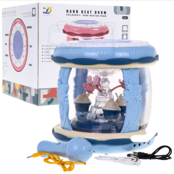 5 az 1-ben zenélő játék - dob, mikrofon, körhinta, zenelejátszó, hangpanelA többfunkciós 5 az 1-ben zenélő kocka egy interaktív játék 18 hónapos kortól . Egy dobot, egy hangpanelt , egy megvilágított körhintát, egy mikrofont és egy MP3 dallejátszót kombinál. A sok funkciónak köszönhetően a gyermek órákon át vigyáz a játékra, és szívesen visszatér hozzá. A játék biztonságos műanyagból készült. A multi-kick legtetején van egy dob , amelyet a gyermek a kezével ütve hangot ad ki. Emellett a hangszert megvilágító színes LED-lámpák is biztatják majd őket. A dob körül kiterjedt hangpanel található . Akár 11 mondókát, 10 történetet és 6 módot kapcsolhat be . A játék belsejében van egy forgó körhinta vidám nyuszikkal és édes süteményekkel. A vonzó hatás érdekében LED-lámpákkal van megvilágítva, amelyek gyönyörű hatást keltenek. A készlet mikrofont és MP3 bemenetet is tartalmaz, így a kis énekes énekelheti és hallgathatja kedvenc dallamait. Az érzékszervi játéknak számos olyan funkciója van, amelyek tetszeni fognak a kicsiknek: