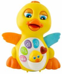 Az interaktív kacsa egy csodálatos, aranyos játék és egyben érdekes tanulási forma minden baba számára .  Énekel, táncol és ragyog, ami érdekessé teszi, és lehetővé teszi a gyermek különböző területeinek fejlesztését, és fejleszti képességeit.  A gyermek sokféle ingerre reagál: hallási, motoros és vizuális ingerekre, ami azt jelenti, hogy a játéknak oktató funkciója van, és a gyermek sem fog unatkozni Az élénk színek és a 6 nagy, színes gomb különböző funkcióira hívja fel a figyelmet és ösztönzi legyen aktív.  A kacsa hasára 4 ovális gomb található, 1 szív alakú és 1 kis kacsa alakú gomb.  Méretük könnyű tömörítést tesz lehetővé.  Minden gomb más-más dallamot vagy hangot aktivál megnyomásakor.  A gombok többszöri megnyomásával módosíthatja a kívánt dallam és hangok típusát. A kacsa speciálisan kialakított formája és finom szélei biztosítják, hogy a gyermek könnyen és szilárdan megfogja a játékot a kezelni. A fej tetején található egy gomb, amely aktiválja a kacsát a játékhoz. > szárnyait, haladjon előre és a tengelye körül.  Emellett a szárnyak és a szív alakú gomb is világít. Ha nincs használatban, a játék néhány percnyi tétlenség után szimpatikus „nyafogó hangot ad ki.  Ez azért van, hogy jobban szórakozzon, vagy emlékeztessen arra, hogy az akkumulátor kímélése érdekében kapcsolja ki az áramellátást. Az interaktív játék alján egy hangerő-csúszka található.  Ez egy hasznos funkció, amely megakadályozza, hogy a kisebb gyerekek megijedjenek a hangos hangoktól, a nagyobb gyerekek pedig anélkül játszhatnak, hogy túlságosan kényelmetlenül éreznék magukat.   Gyermeke biztonsága érdekében, ha elemet szeretne cserélni, csavarhúzóval nyissa ki a fedelet.  Ez csökkenti annak a kockázatát, hogy a gyermek véletlenül behatoljon az akkumulátorba, ami veszélyt jelenthet rá A játék CE és EN71 tanúsítvánnyal rendelkezik, így biztos lehetsz babája egészségében. Gyermekek számára biztonságos anyagokból készült. Egy interaktív kacsa is nagyszerű ajándék lesz, amely örömet okoz gyermekének, és fejleszti különféle képességeit.