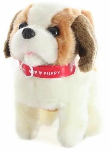 Egy plüss kutya minden állatbarátnak tetszeni fog. A kapcsoló BE állásba kapcsolása után a kutya magától sétál és ugat.