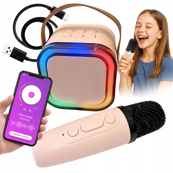 Lewer Karaoke Szett Mikrofon Bluetooth Vezeték Nélküli Hangszóró Gyerekeknek Usb (Zestaw do karaoke - mikrofon + głośnik)