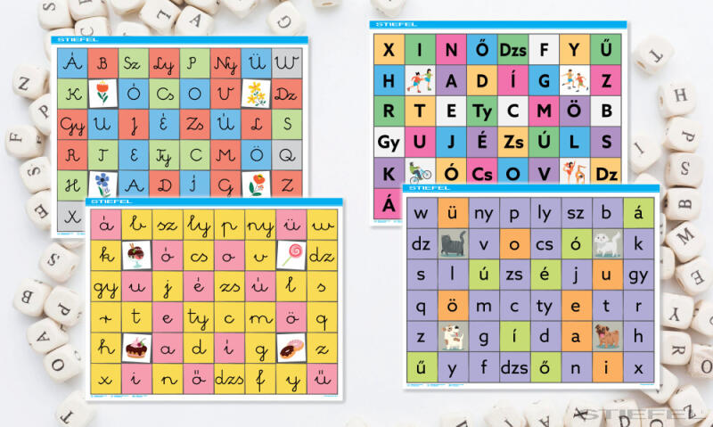 • Nyomtatott kisbetű – a magán- és mássalhangzók megkülönböztetésén túl a rövid és hosszú magánhangzókat is különböző színnel jelöltük (BBP40)