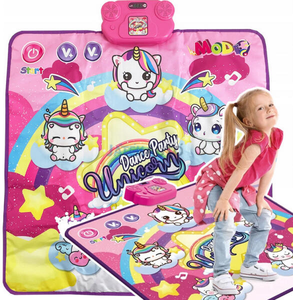 Dancing Challenge unikornis zenélő táncszőnyeg - A Dancing Challenge unikornis zenélő táncszőnyeg 4 darab AA ceruzaelemmel működik, a csomagolás az elemeket nem tartalmazza. Szőnyeg méretei: 90 x 90 cm.