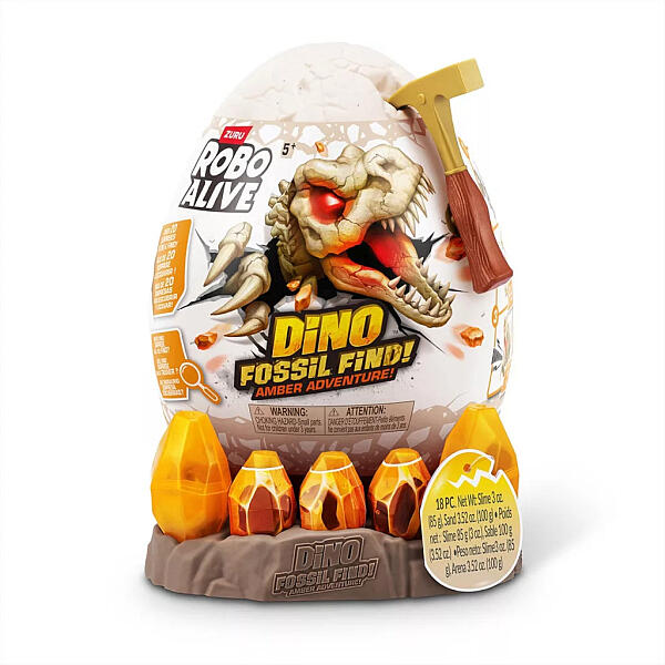 A Robo Alive dinó fosszília szett egy izgalmas régészeti kalandra hív, ahol a gyerekek több rétegen át, saját „ásatásukon fedezhetik fel a múlt titkait. A borostyánsárga tojás feltörése után kőzet-, homok- és slime-rétegek várnak, köztük egy különleges, világító magma-slime, amely még látványosabbá teszi a felfedezést.