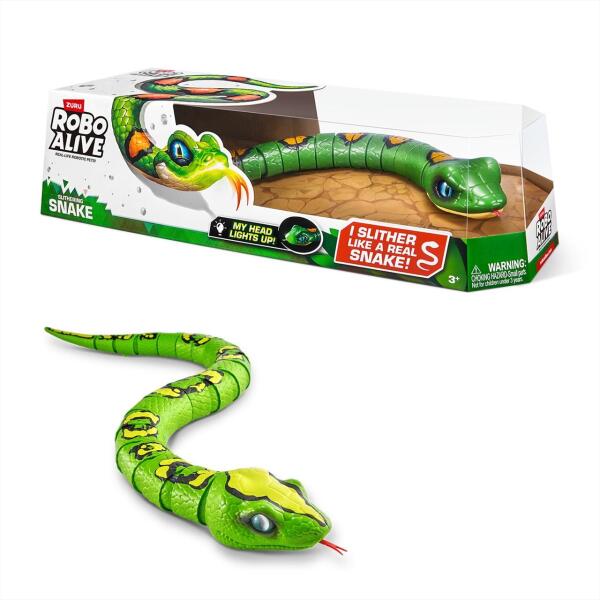 Óvakodj a sűrű dzsungelek rettegett ragadozójától! Csak óvatosan kapaszkodj, mert a zöld liánok helyett ádáz bestiákhoz érhetsz! Hogy ki tud a legjobban elrejtőzni ilyen tájakon? Jobb ha fülelsz, hogy felismerd a rettegett piton baljós sziszegését! A Zuru Robo Alive piton pedig épp úgy kúszik, akár az igazi kígyók, és fényhatások teszi még baljósabbá, amikor felméri a terepet haladás közben. Rejtsd el a meglepetés erejéhez, és aktiváld a legnyugodtabb pillanatokban. Ez a tekergő kígyó 80 cm hosszú. A játék 2 darab 1.5V AAA/LR03 elemmel működik, melyet külön szükséges beszerezni.